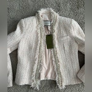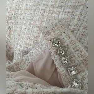LUXURY LONG SLEEVE PEARL TRIM FRINGED BUTTON FRONT TWEED JACKET - PINK . Brand NEW