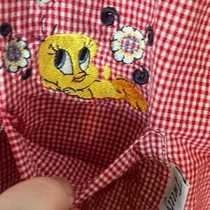 Tweety Bird 26/28 Womens Button Up Red White Plaid Looney Tunes Floral Collared