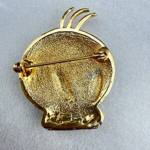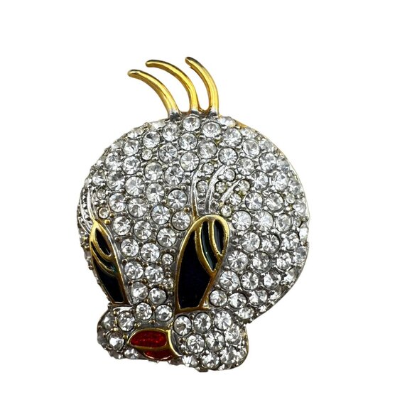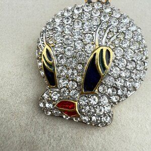 Elegant Tweety Bird brooch with dazzling rhinestones and gold-tone details. Perfect for accessorizing outfits or gifting to a collector or jewelry enthusiast.