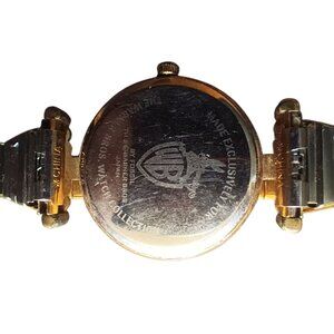 Embrace nostalgia with this exquisite gold-tone Tweety Bird watch, an exclusive Warner Bros collectible. Its timeless design and vibrant character detail evoke cherished memories of classic animations from days past. This timepiece is a treasure for vintage enthusiasts and Warner Bros fans alike, capturing the spirit of beloved cartoons.