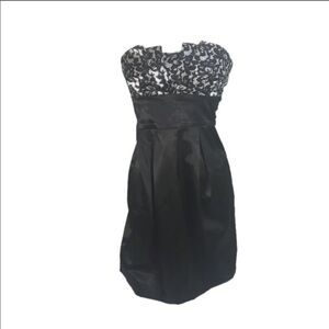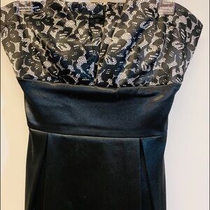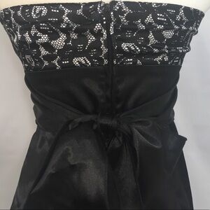 Prom or cocktail dress. Black & White Strapless short dress. The top is a black and white lace. The bottom is a solid black satin material.