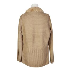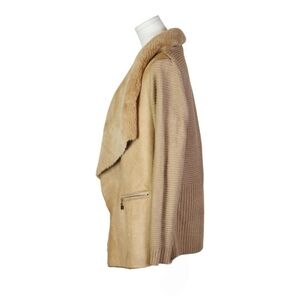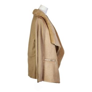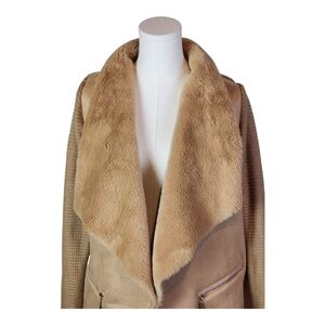 Twelfth Love Faux Shearling Suede Knit Jacket Camel Open Front Cardigan L