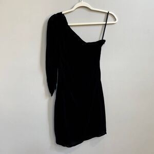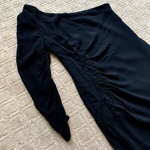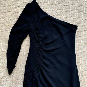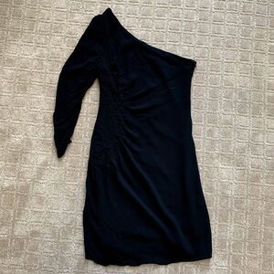 Twelfth Street By Cynthia Vincent One-Sleeve Ruched Rayon Silk Mini Dress Black 4