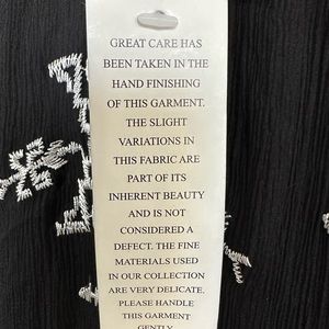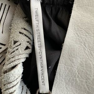 Twelfth Street Cynthia Vincent Black Silk Sheer Dress Geometric Pattern with a Leather Laser Cut Yoke Handkerchief Hem Lined Native American Inspired Design