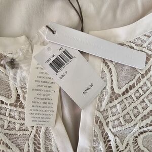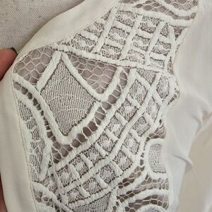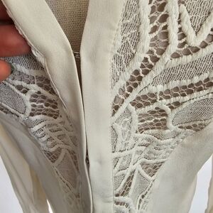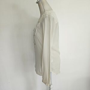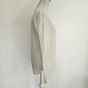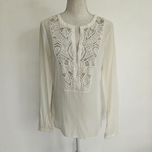 Twelfth Street by Cynthia Vincent from Revolve "Both Sides Now" Henley silk blouse with lace bib and hook & eye front closures. Beautiful cream color with a slightly darker cream/taupe lining under the lace.