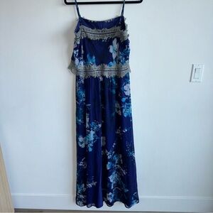 Twelfth Street by Cynthia Vincent Silk Blue Floral Maxi Dress Size Medium