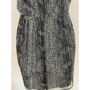 This gorgeous 100% silk strapless dress by Twelfth Street by Cynthia Vincent is perfect for cocktails, weddings, or an elegant night out. Black and gray with metallic gold shimmer details, fully lined, and flattering sweetheart neckline.