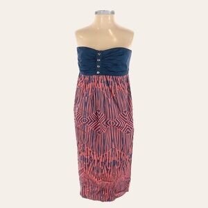 Twelfth Street by Cynthia Vincent Strapless Silk Midi Dress 2 Boho Tribal Teal
