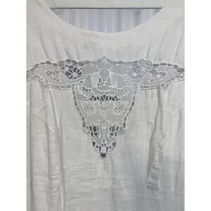 The Twelfth Street by Cynthia Vincent White With Embroidered Steer Western Size 8 dress is a vintage-inspired piece perfect for the summer season. Made from linen, this midi-length sundress features a boat neck neckline and solid white color with intricate embroidered accents. The Western and Bohemian themes give it a unique and stylish look, making it a standout piece in any woman's wardrobe. 100% linen