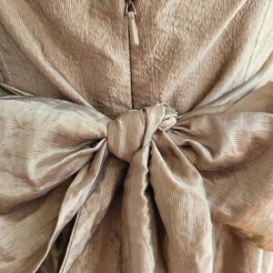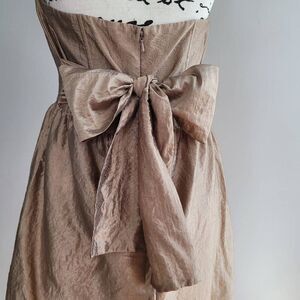 Twelfth Street by Cynthia Vincent size 8 bronze gold metallic strapless mini dress with corset boning and a tie bow detail in the back. In excellent pre owned condition with no damage and minimal wear as shown in photos. Perfect for a formal event, wedding guest, prom, homecoming.