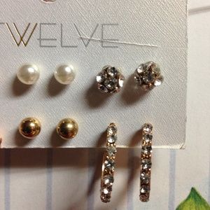 Twelve Brand of Set of Six Fashion Pave Earrings