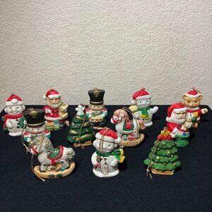 Twelve Whimsical Ceramic Christmas Tree Ornaments
