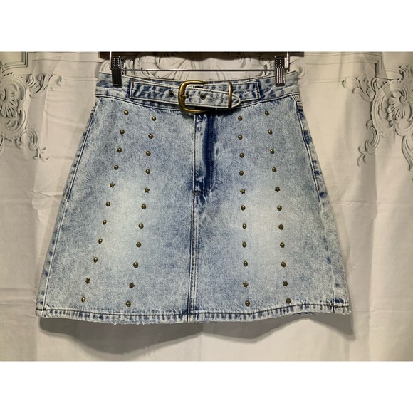 Twelve by Ontwelft Studded Denim skirt size Med. Super cute mini Denim skirt with studs and a belt to finish the look!