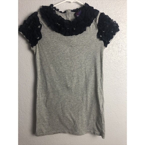 Twelve by Twelve Los Angeles Gray Top With Navy Ruffles Size Small Cute