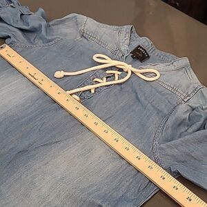 Twelve Blue Bamboo/Cotton Blend Quarter Sleeve Tie Front Mini Dress