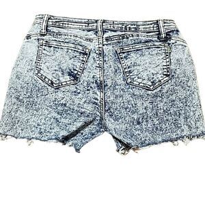 4" inseam. Frayed bottoms . Size 16 youth. 14" across waist. stonewash