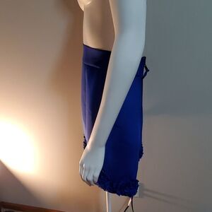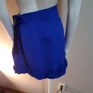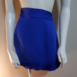Twelve by Twelve Los Angeles blue skirt with flowers around the bottom and a zipper on the side.