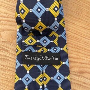 Twenty Dollar Tie 100% Silk Navy, Blue and Yellow