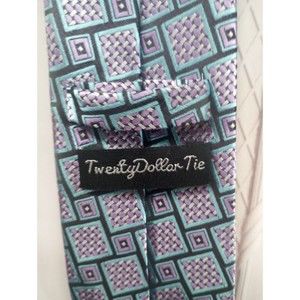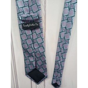 Twenty Dollar Tie Men's 100% Silk Handmade Geometric Print Metallic Sheen EUC