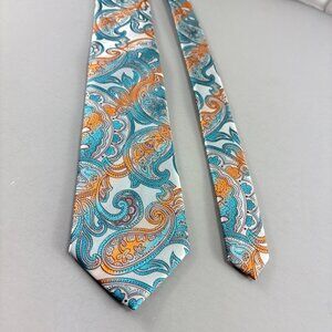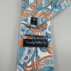 Twenty Dollar Tie White /Teal / Orange Paisley Men's Extra Long Tie 3 1/2" x 63"