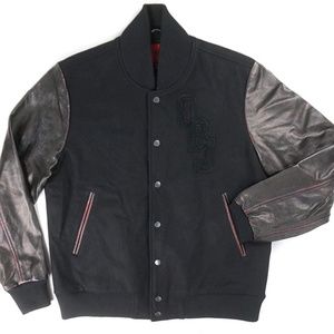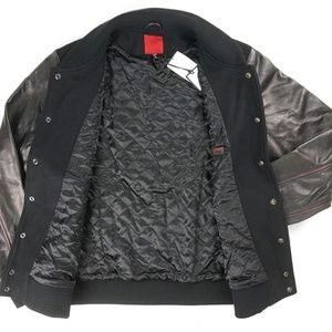 The shell is made from 80% wool 13% viscose 7% polyester and the sleeves are made from an all natural leather