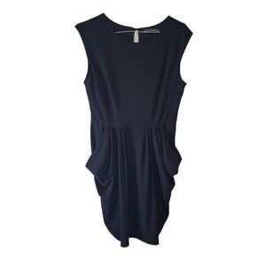 Twenty One Black Sleeveless Ruched Midi Dress with Pockets