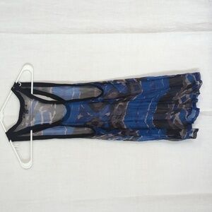 🍉 Twenty One Blue Black Abstract Pattern Silk Racerback Tank Sheer Size Medium