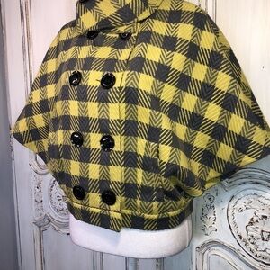 Twenty One Chartreuse and Gray Plaid French Vibes Double Breasted Jacket Size M