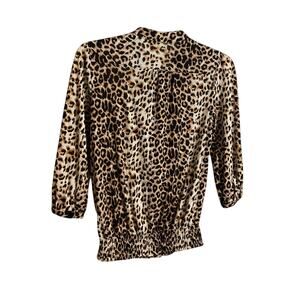Twenty One Leopard Print Top Ruffle Size S Accent Tie Neck Elastic Waist Spring