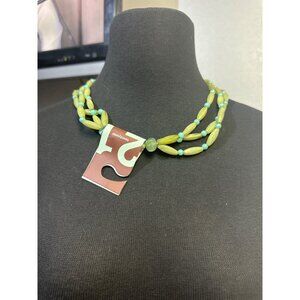 A beautiful Twenty One Triple Strand Green and Blue Acrylic Beaded Necklace. The vibrant colors and intricate design make it a stunning addition to any jewelry collection. Perfect for both formal and casual wear.