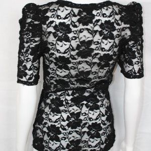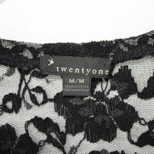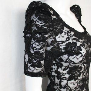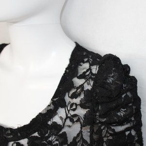 Twenty One Women's Top Lace 1/2 Sleeve Round Neck Black Medium