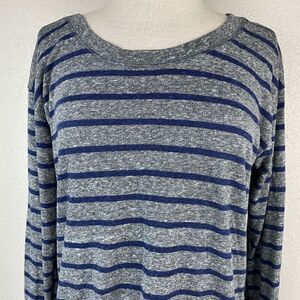 Twenty One Gray and Blue Striped Long Sleeve Top Size M EUC