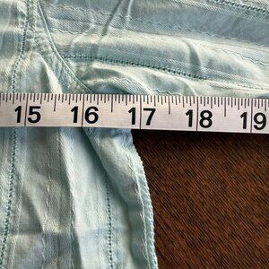 Small stain on the sleeve. Pit to pit = 17 inches, Top to bottom = 20 inches.