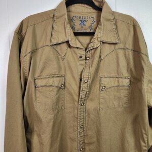 Twenty X Tan Corduroy Pearl Snap Western Button Down Shirt