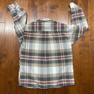 Impress your Western friends with the Twenty X Wrangler Western Vintage 20X Gray Tan Button Front Shirt. Made from 100% cotton, this pre-owned shirt is in excellent condition with long sleeves. Perfect for a classic Western look.