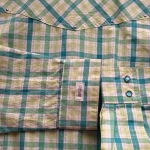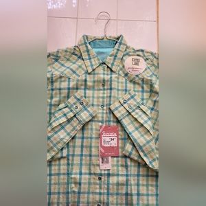 NWT. Twenty X western green/blue check,silver sparkle, snap buttons. NWT