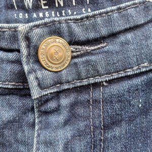 TWENTY xx JEANS, LOS ANGELES, CA. Branded studes. Measurements: Waist 35" Inseam 27" Rise 10" Leg opening ( across flat) 8" Cheers,