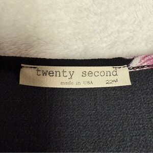 Twenty second size small twist front Floral Black Blouse with Pink Accents
