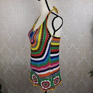TwentyOne Size Medium Colorful Crochet Halter Top Scoop Neck Tie at Back of Neck