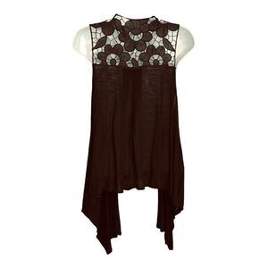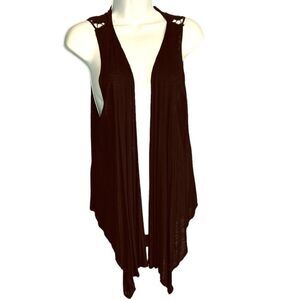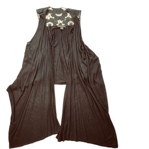 TwentyOne Sleeveless Light Weight Flyaway Cardigan Vest with Floral Cut out Back