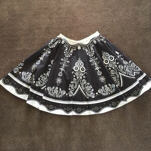 ADORABLE skirt in brown & cream as well as accent of gold. Hidden zipper on side w hook closure. Two tiny marks on skirt. Measures 23". 100% cotton. Size XS.