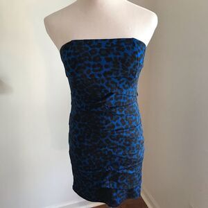 Twenty One Strapless Blue/Black Leopard Dress Sz M
