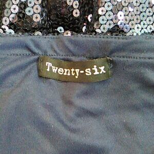Midnight blue. All sequins intact. Pull on stretch. Lining has a couple runs but is in good shape, and you'll never see this. Top has adhesive strips to help secure. I'm showing on my size 6 mannequin and it fits perfectly. Chest measures 34-36, waist, 30-32, hips 38-40, 27 long from under arm to hem. Perfect party dress.