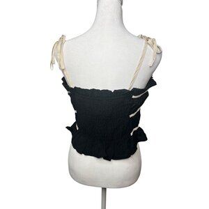 Twenty/Thirty Black & White Tie-Strap Ruffle Top Large