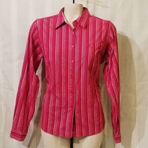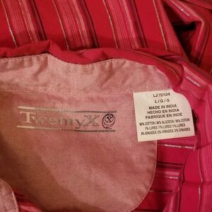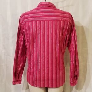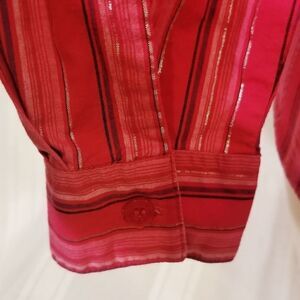 small spot on the cuff of one arm, see pic. otherwise the shirt is in great condition. has silver threads woven into the fabric.