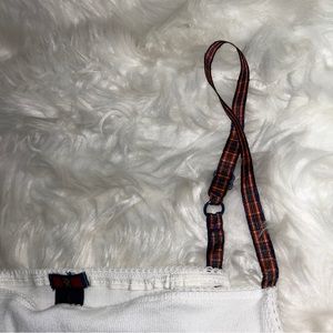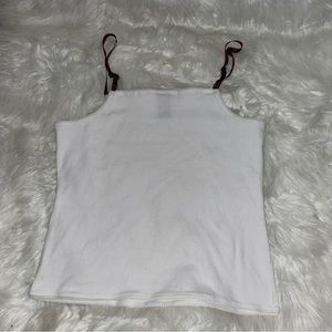 Cute white ribbed tank top with red plaid ribbon adjustable straps. Size Large
