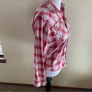 TwentyX Wrangler Western Shirt Pearl Snap Buttons Plaid Embroidered Red: XL