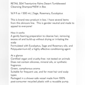 Twentynine Palms Desert Tumbleweed Cleansing Shampoo *NEW* RETAIL $54