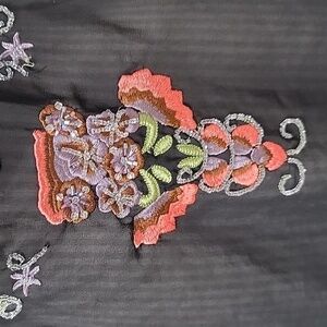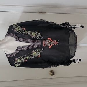 Twentyone Brand Size L, Black Embroidered V Neck Sheer Top.