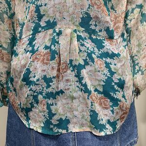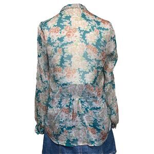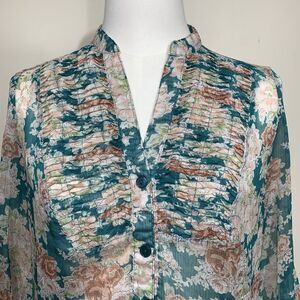 Twentyone Women’s Sheer Floral Button-Up Blouse Size S Ruffle Detail Lightweight